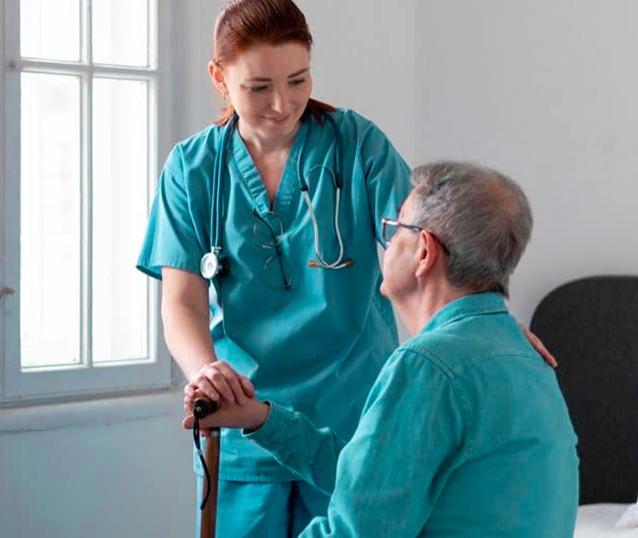 Assistência de enfermagem qualificada para monitoramento da saúde, administração de medicamentos e cuidados essenciais no dia a dia do paciente.
